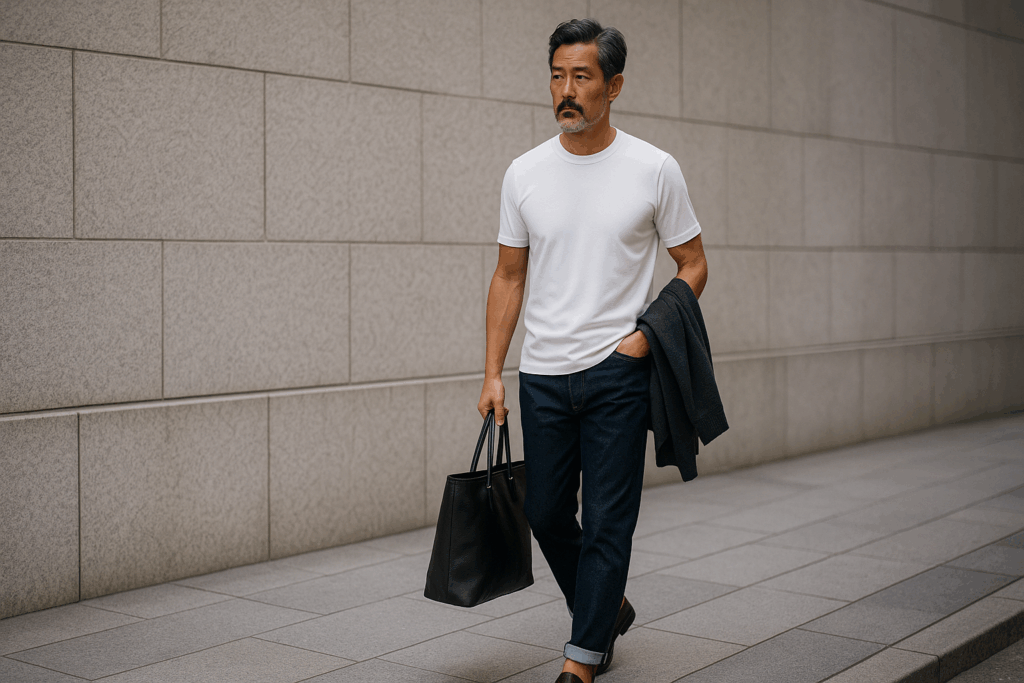 40代・50代のお悩み相談, 40代・50代向けファッション術, 60代向けファッション術, 季節別スタイリング「部屋着っぽい」と言わせない。40代からの“Tシャツの選び方と脱・部屋着コーデ3選” 2025年9月30日
