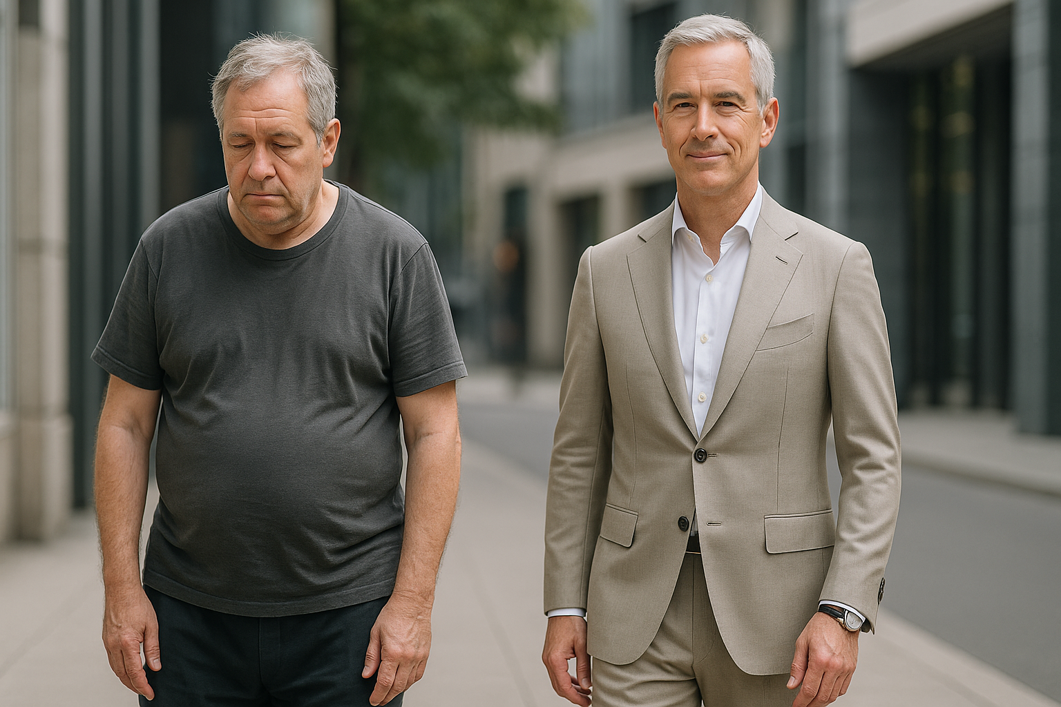 特に60代の男性は、お腹まわりのボリュームや肩の落ちなど、若い頃とは異なる身体のラインに戸惑う方も多いでしょう。