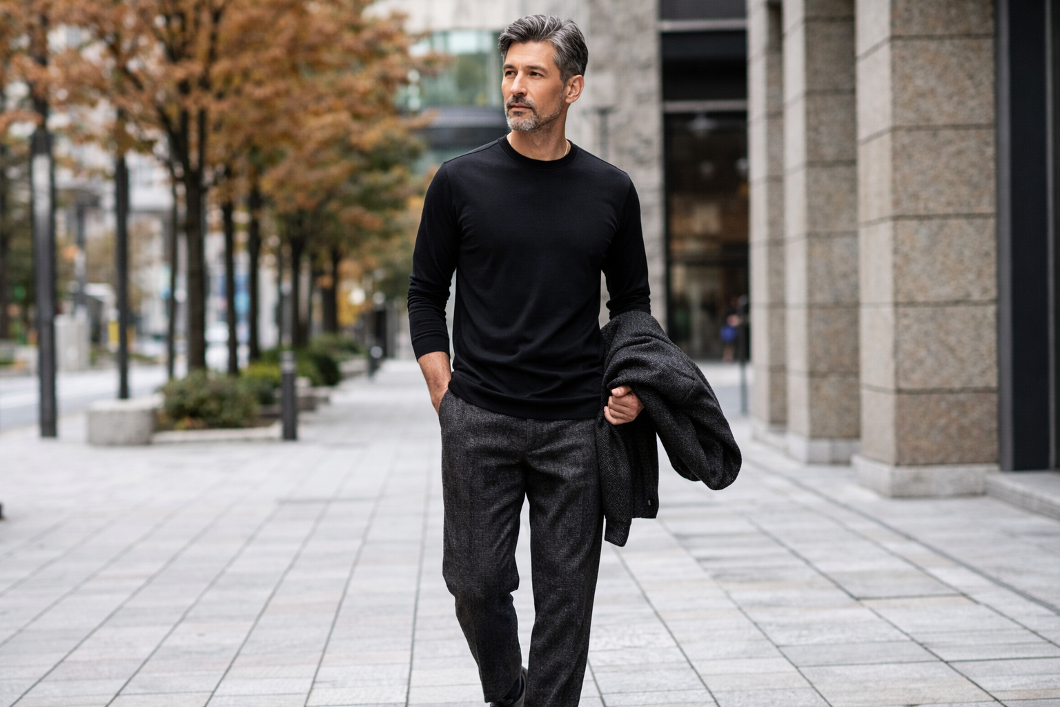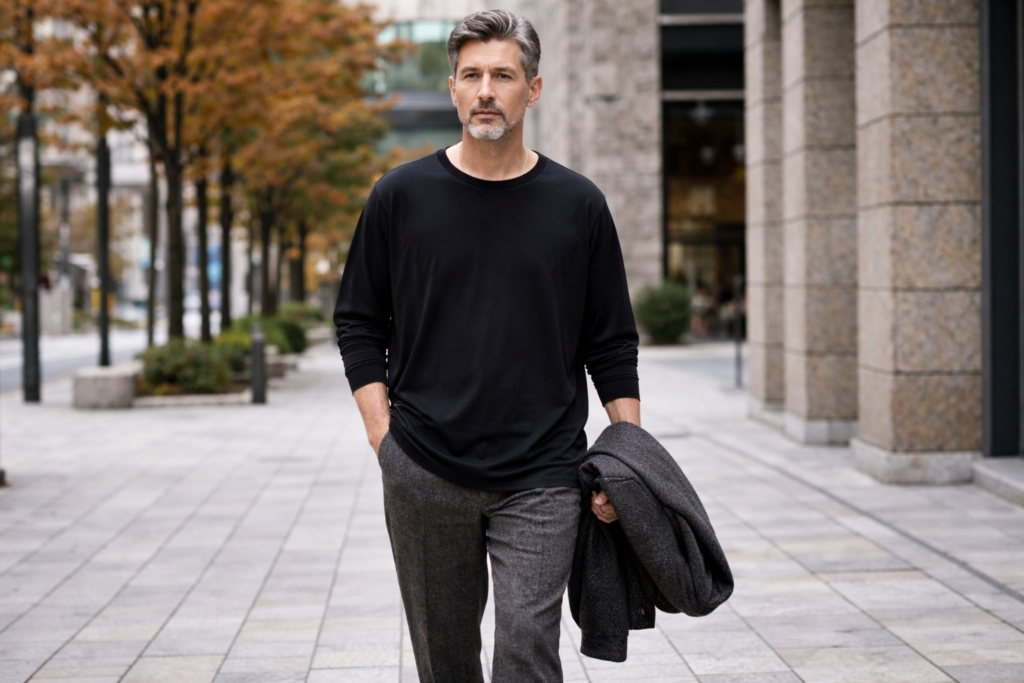 40〜60代の男性が「太って見える」と感じられてしまう原因は、加齢による体型変化そのものよりも、服選びの判断基準が若い頃のまま止まっていることにあります。