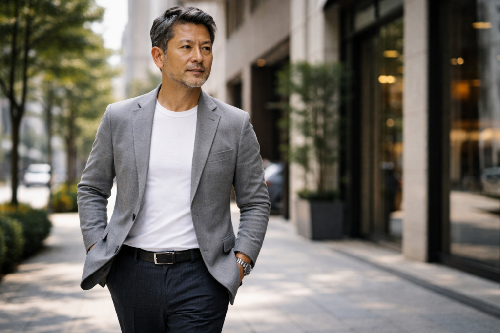 今の体に合うサイズとシルエットを再定義することが、見た目の若々しさを保つ第一歩です。