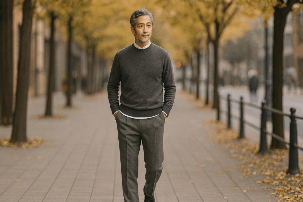 40代・50代のお悩み相談, 40代・50代向けファッション術, 60代向けファッション術, ファッションNG・改善, 季節別スタイリング【秋の始まりに読まれています】40代からの男性が「若見えする」重ね着の黄金比を完全解説! 2025年10月27日