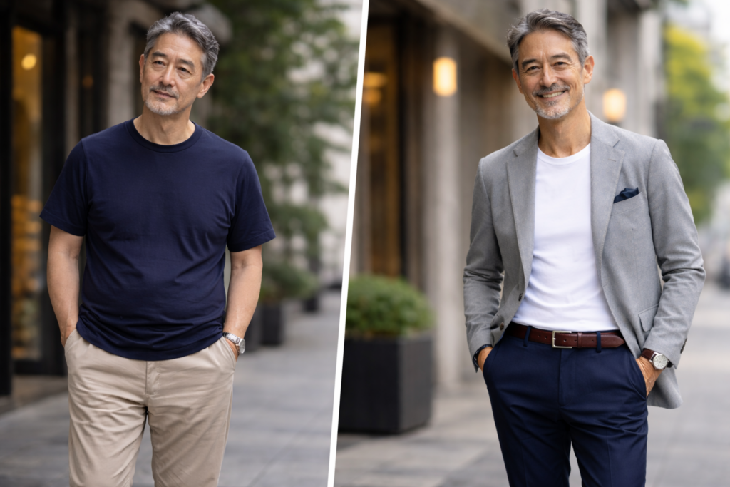 40代・50代のお悩み相談, 40代・50代向けファッション術, 60代向けファッション術, お腹・体型カバー, ファッションNG・改善, 大手メーカー・既製品比較清潔感がある人とない人の差は“服の印象設計”にある|40代・50代・60代ファッションでつくるキレオジスタイル 2026年1月10日
