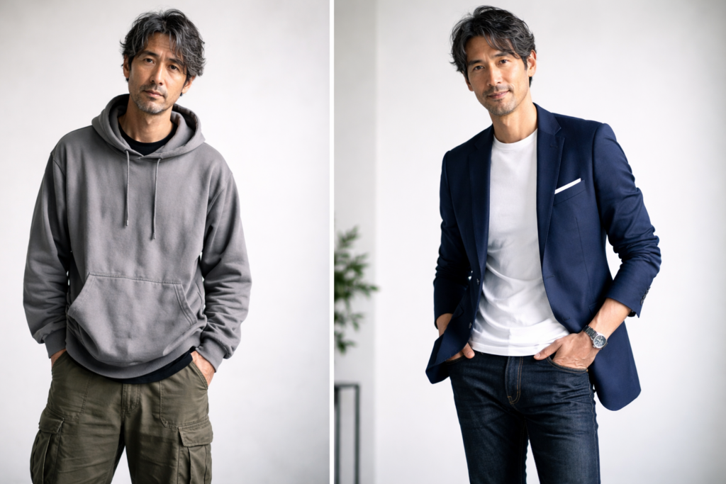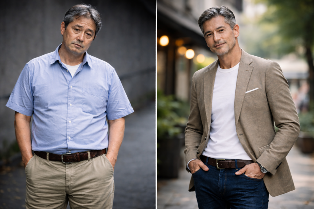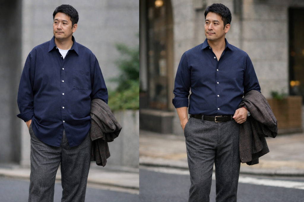 40代・50代のお悩み相談, 40代・50代向けファッション術, ファッションNG・改善「あの人なんか信頼できる」 ~50代男性の清潔感を決めるのは¨ポッコリお腹¨を解消できる服装だった~ 2026年2月25日