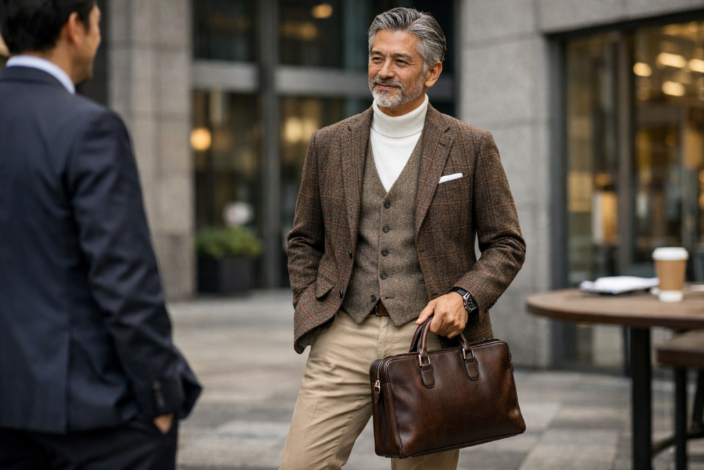 40代・50代のお悩み相談, 40代・50代向けファッション術, 60代向けファッション術, ビジネス・通勤スタイル, 大手メーカー・既製品比較40代・50代のためのビジネスジャケパン完全ガイド|体型カバーで信頼感アップ 2025年12月23日