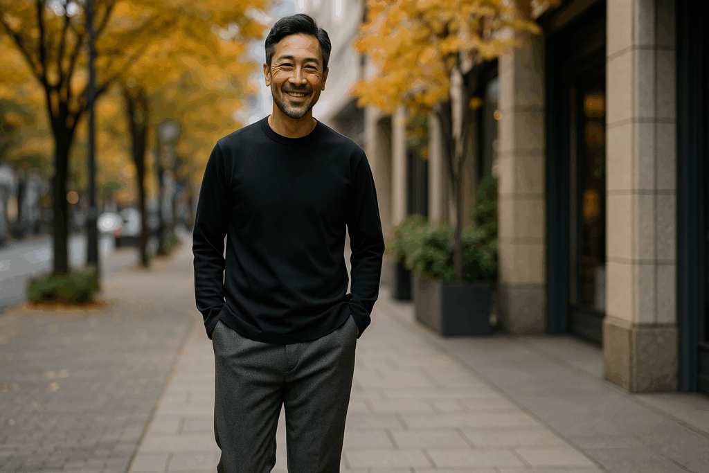 40代・50代のお悩み相談, 40代・50代向けファッション術, 60代向けファッション術, ファッションNG・改善, 季節別スタイリング【秋の始まりに読まれています】40代からの男性が「若見えする」重ね着の黄金比を完全解説! 2025年10月27日