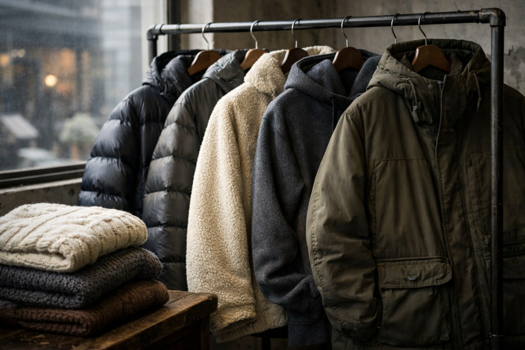 40代・50代向けファッション術, 60代向けファッション術, ファッションNG・改善, 季節別スタイリング冬の着ぶくれ解消|40代・50代男性が-5kg見える重ね着テク&色合わせ 2025年12月19日