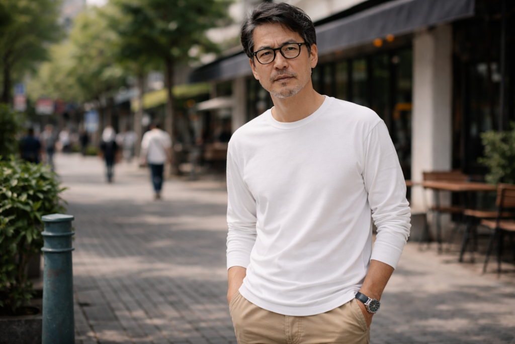 多くの服は若い世代を基準に作られているため、50代男性が着ると違和感が出ることがあります。