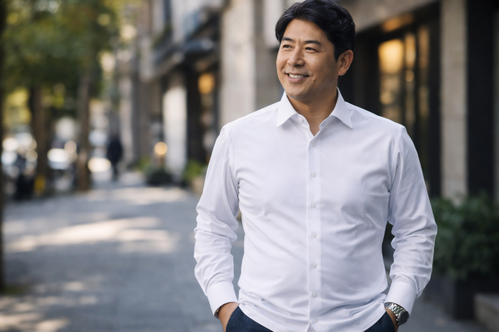 とくに胸・お腹にボリュームが出やすい40〜60代男性にとっては、合わない服を選ぶと余計に体型が強調され、だらしない印象すら与えかねません。