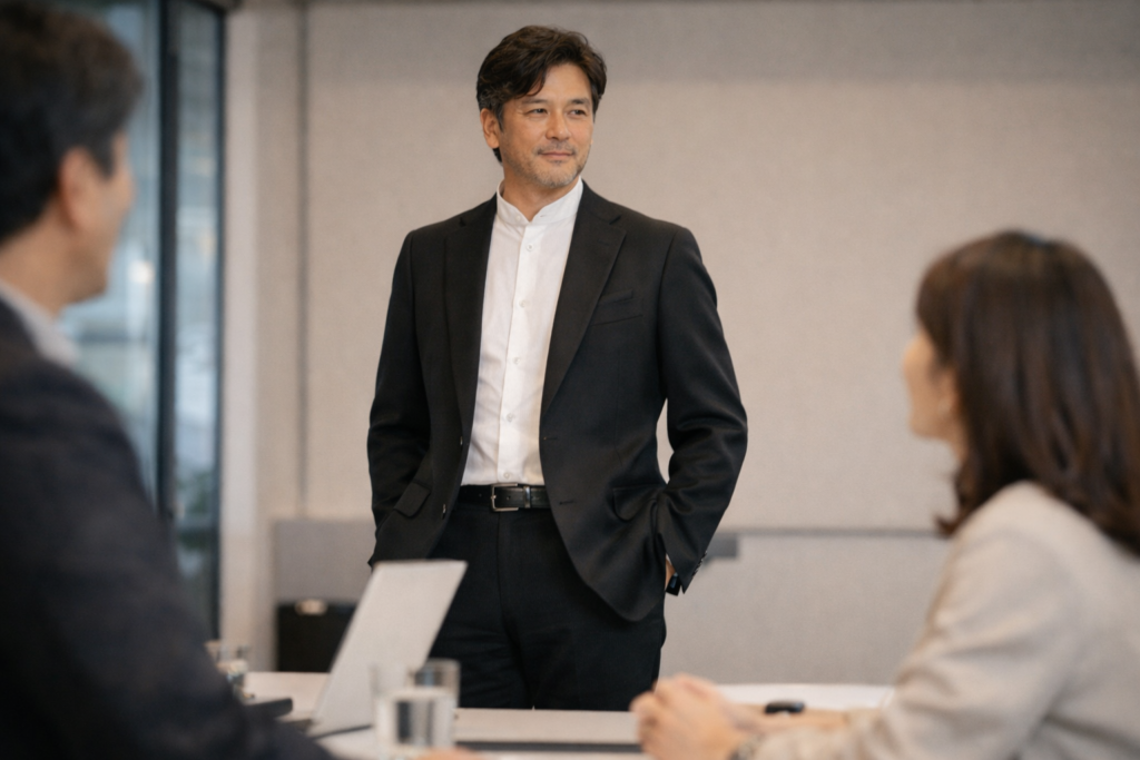 シルエットや素材、設計思想にまでこだわった大人服は、着る人の信頼感を自然に引き出してくれます。