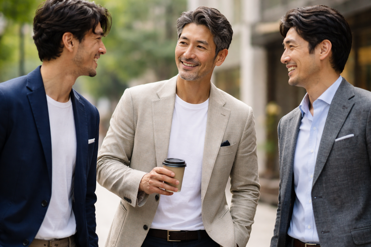 Tシャツ1枚では心もとない場面でも、上質なシャツや軽いジャケットを1枚羽織るだけで、周囲に与える安心感は格段に向上します。
