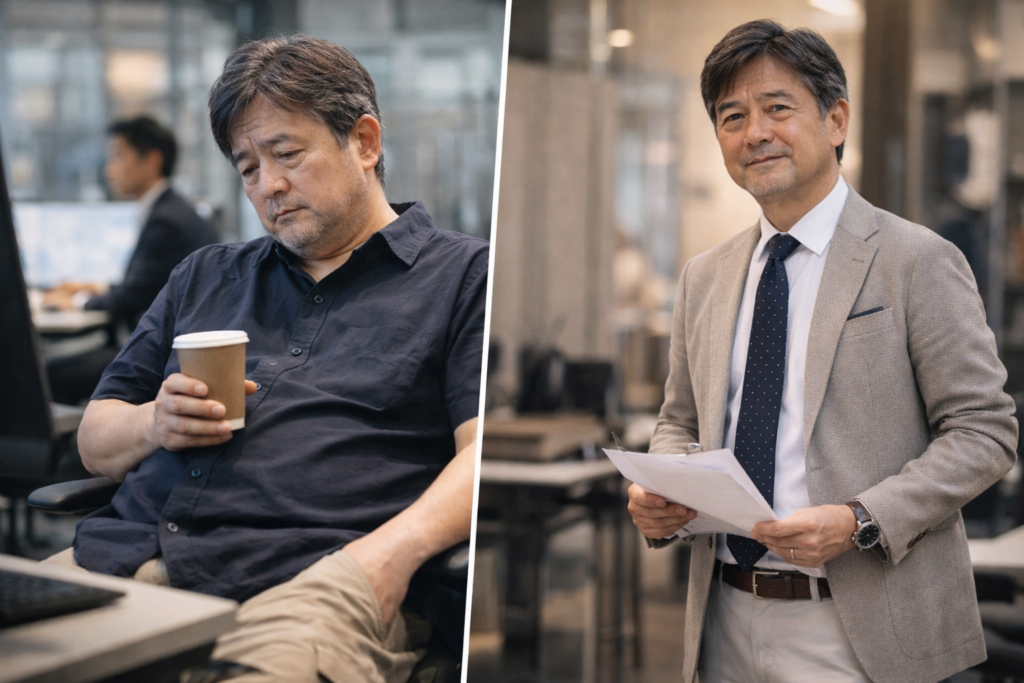 本記事では、なぜ無難な服が老け見えにつながるのかを紐解き、清潔感を取り戻すための考え方を整理していきます。