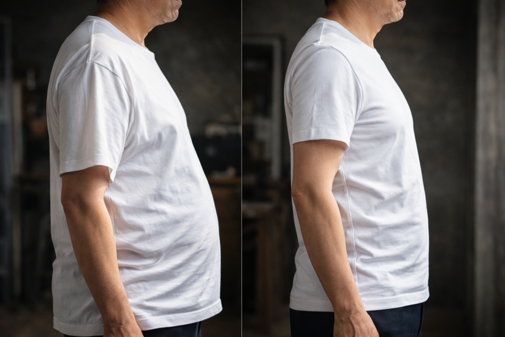 他社との違いは明白で、特にお腹周りに悩みを抱える40〜60代男性にとって、見た目年齢を左右する決定的なポイントになります。