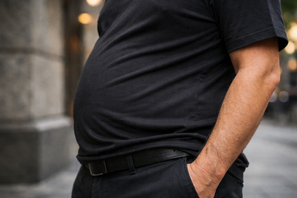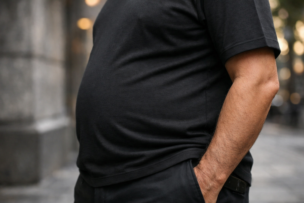 - ぽっこりお腹が気になりTシャツの裾がすぐ上がってしまう40〜60代男性