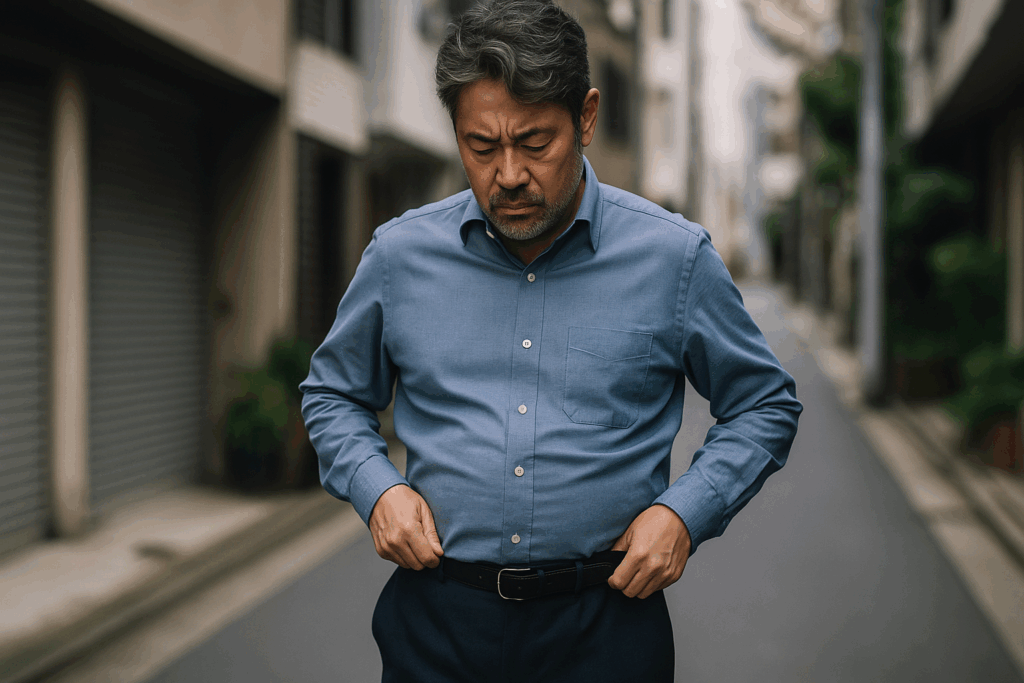 ズボンがずれてくる不快感──その原因は、体型の変化と既製パンツの構造的不一致にあります。